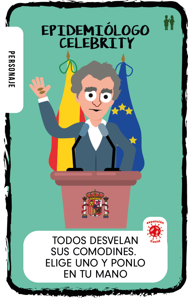 - 1 carta de personaje: epidemiólogo celebrity. Encarnado por el ya conocido Fernando Simón.